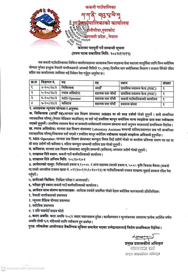 करारमा कर्मचारी पदपूर्ति गर्ने सम्बन्धमा !