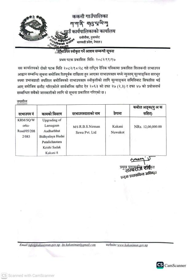 दरभाउ स्वीकृत गर्ने आशय सम्बन्धि सुचना