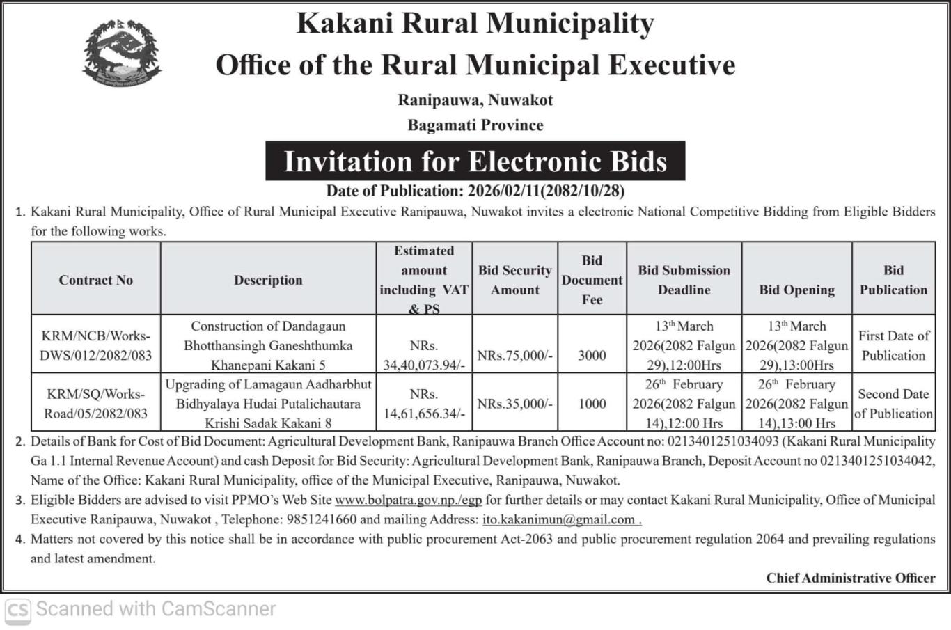 बोलपत्र आह्वान सम्बन्धी सूचना !