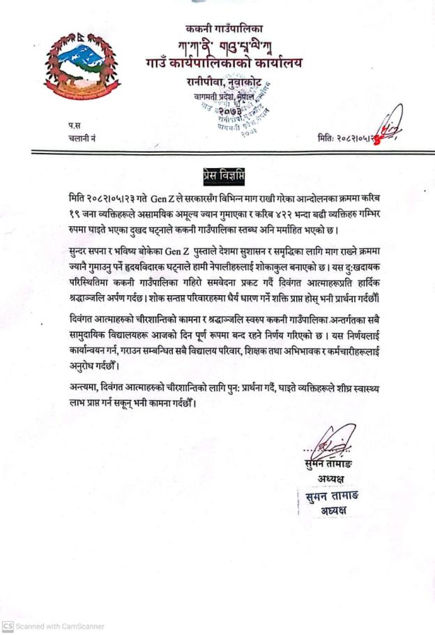 ककनी गाउँपालिकाको प्रेस बिज्ञप्ति