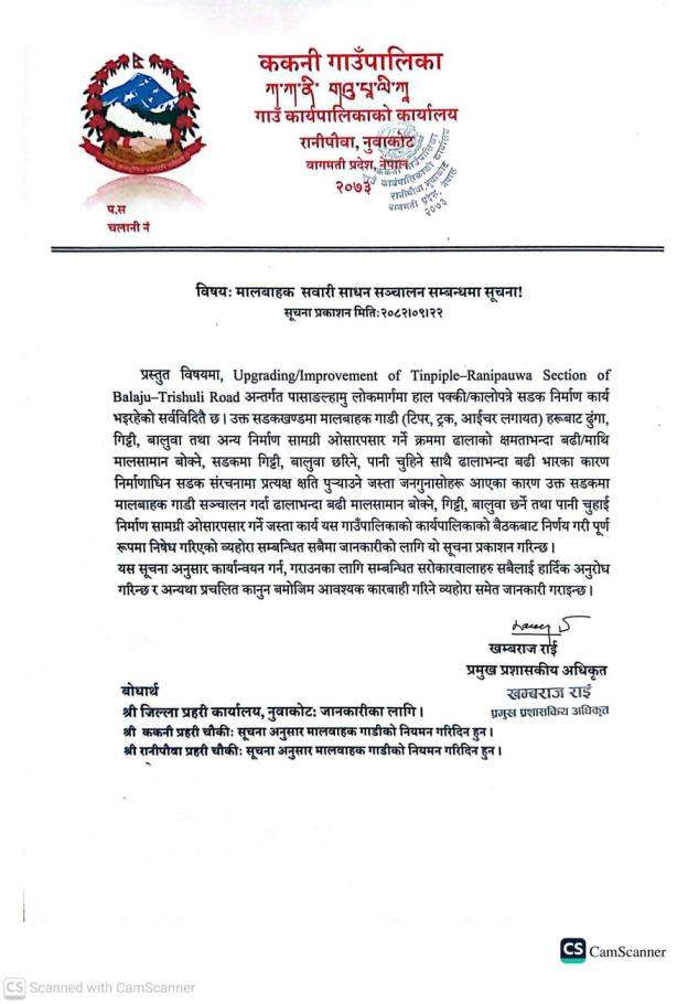 ककनी गाउँपालिका भित्र सञ्चालनमा रहेको क्रसर/वासिङको लागि अत्यन्तै जरुरी सूचना!