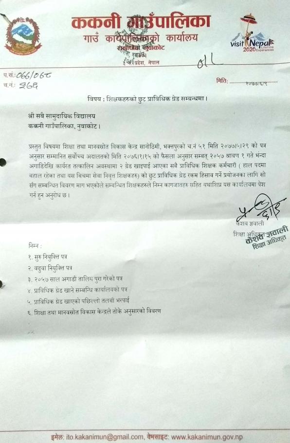 शिक्षकहरुको छुट प्राविधिक ग्रेड सम्बन्धमा सूचना