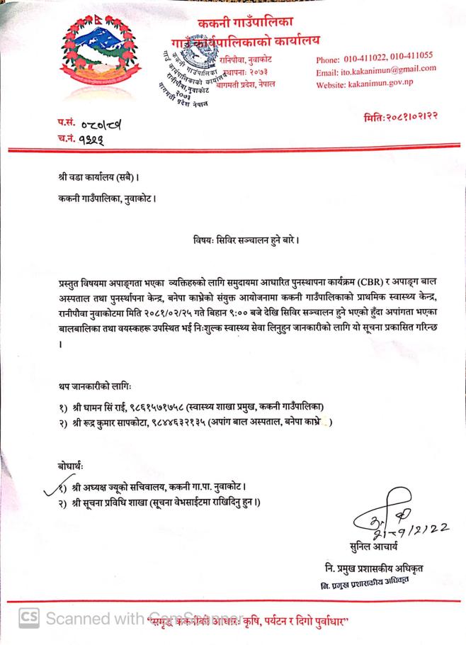 शिविर सञ्चालन सम्बन्धमा ।
