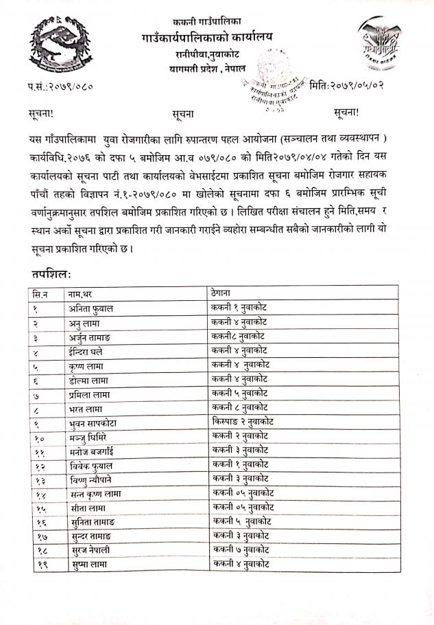 प्रारम्भिक योग्यताक्रम सूची एवम् परीक्षा तालिका प्रकाशन सम्बन्धमा।